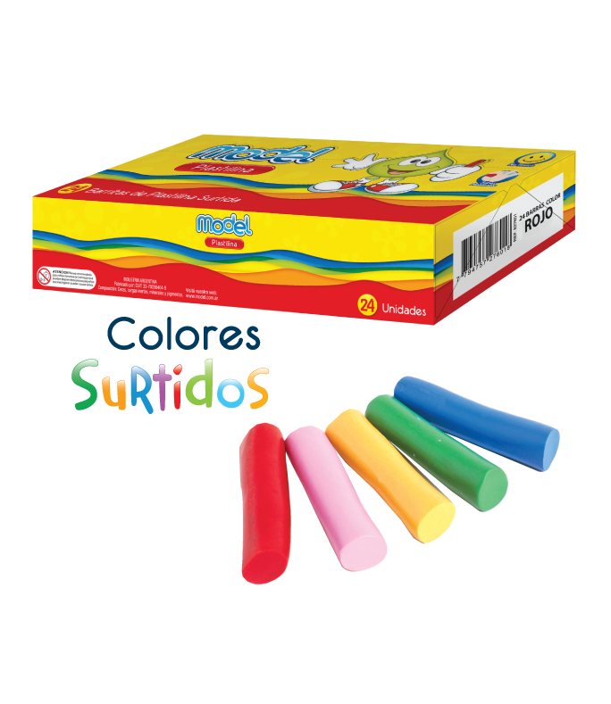 ¡Las plastilinas Model ofrecen la gama de colores más amplia y divertida! Por su composición y textura son fáciles de moldear y permiten que la manualidad realizada se mantenga firme por mucho más tiempo. Cada barra viene sellada en un flowpack individual lo que permite que las plastilinas siempre estén en excelente estado. Model garantiza la calidad de sus plastilinas por 4 años desde su fabricación.